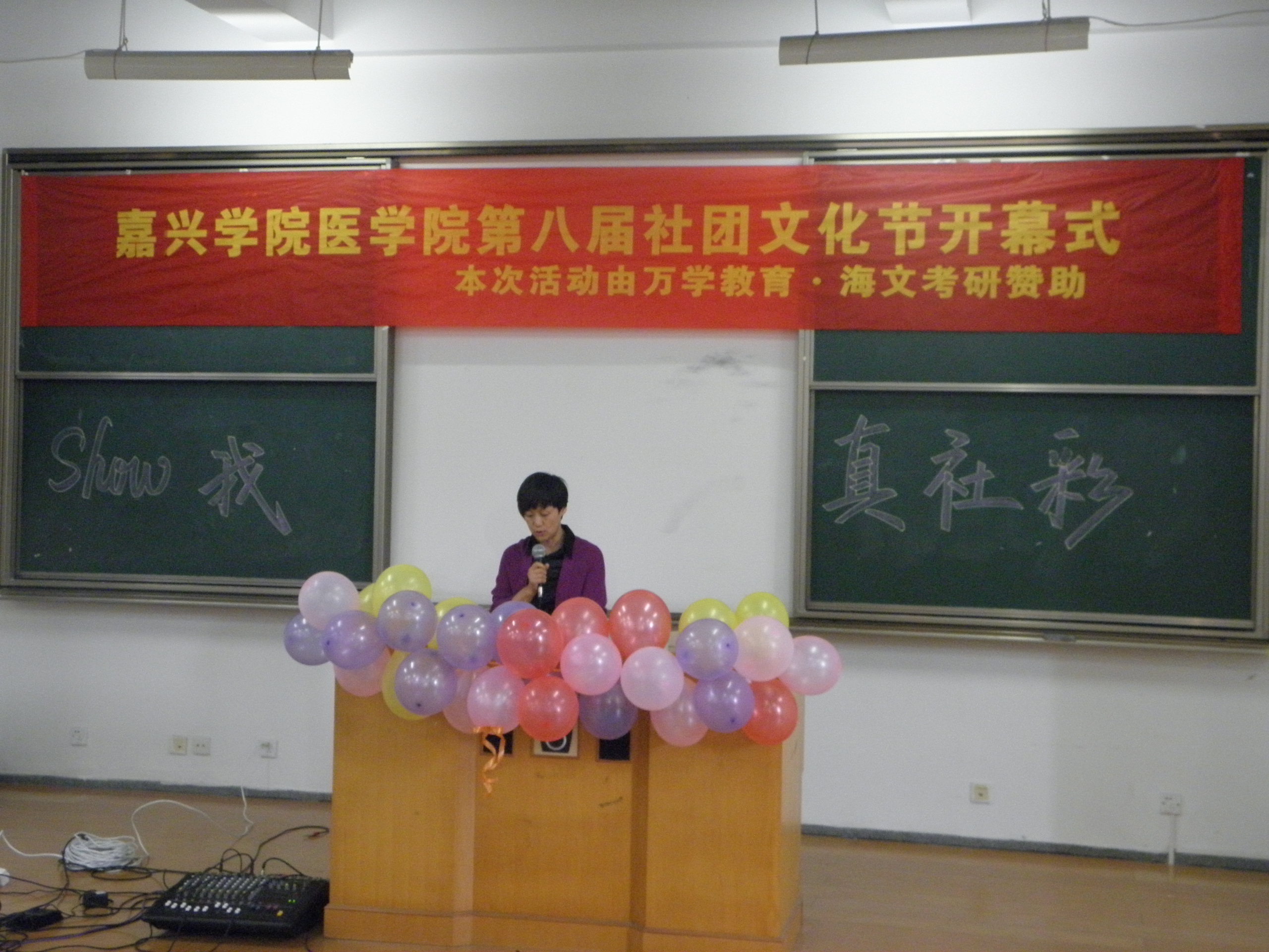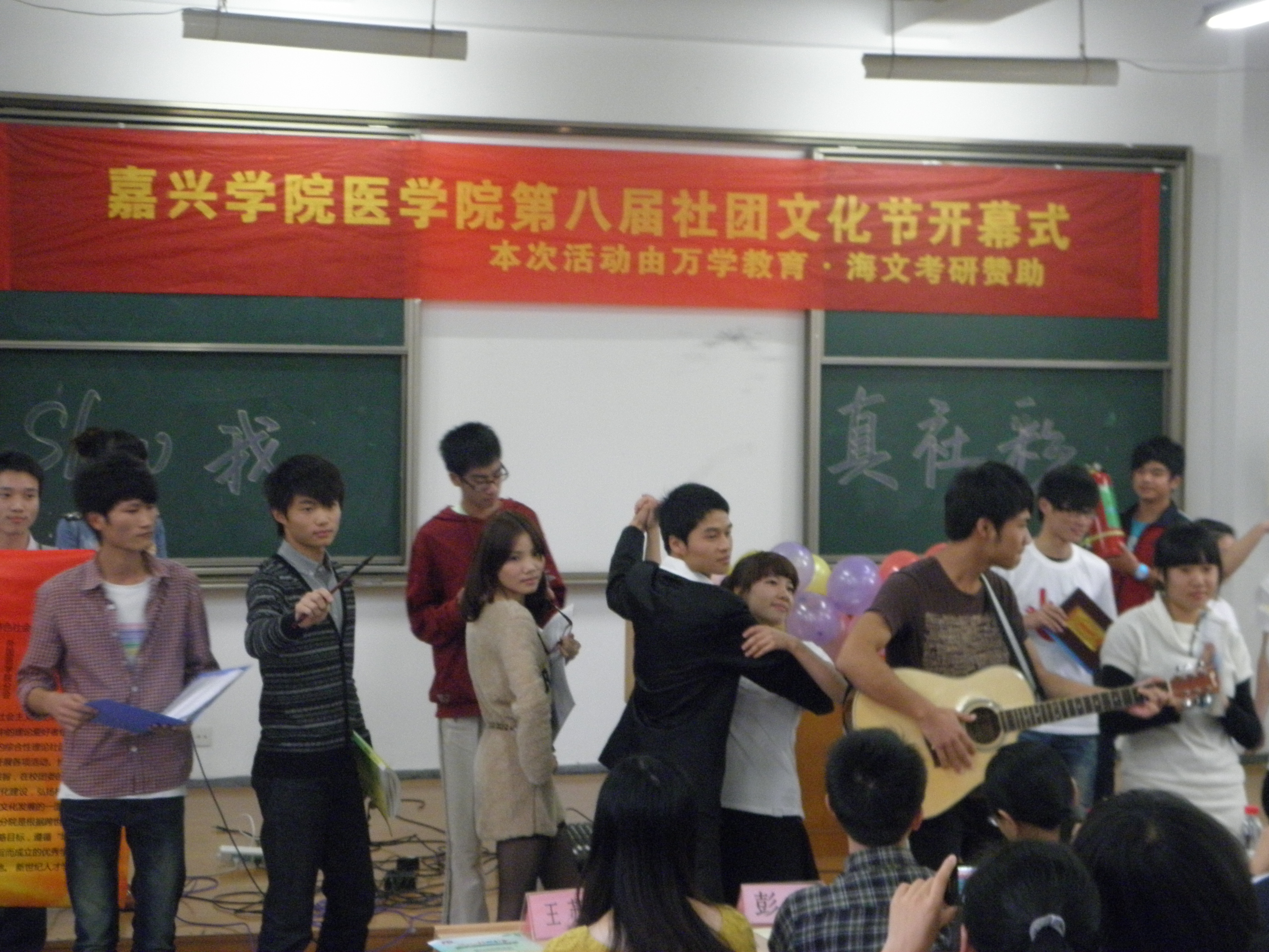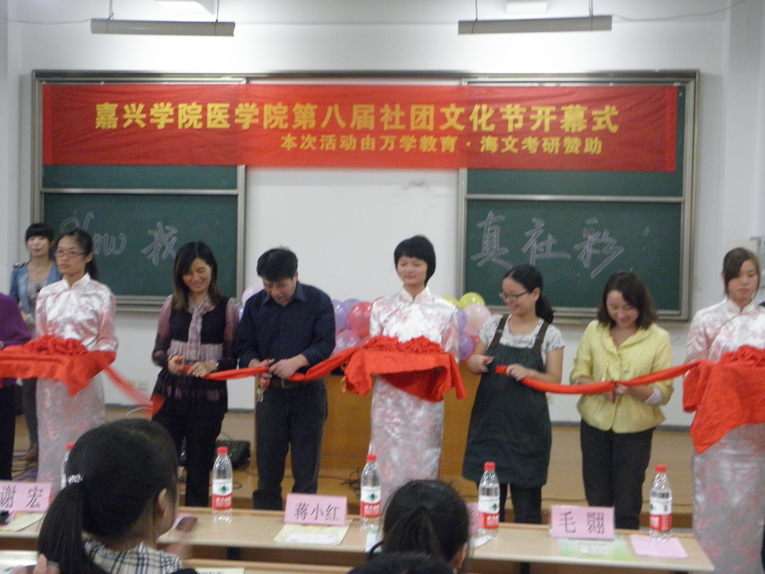 2011年10月19日中午12:30,医华体会体育(中国)HTH·官方网站第八届社团文化月“Show我真社彩”开幕式在梁林校区1号楼121教室举行。医华体会体育(中国)HTH·官方网站党总支书记、副院长张杰、党总支副书记谢宏、学工办团总支辅导员出席本次活动,并为开幕式剪彩。